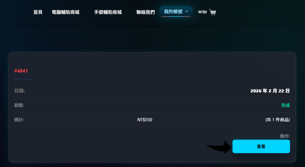 點擊「我的帳號」—「訂單」—「查看」